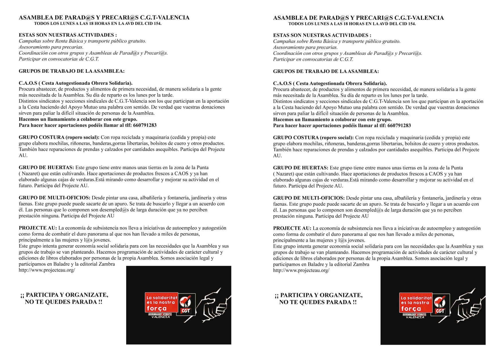 SOLIDARIDAT OBRERA | AUTOGESTIÓ | SUPORT MUTU | ORGANITZACIÓ | SINDICALISME