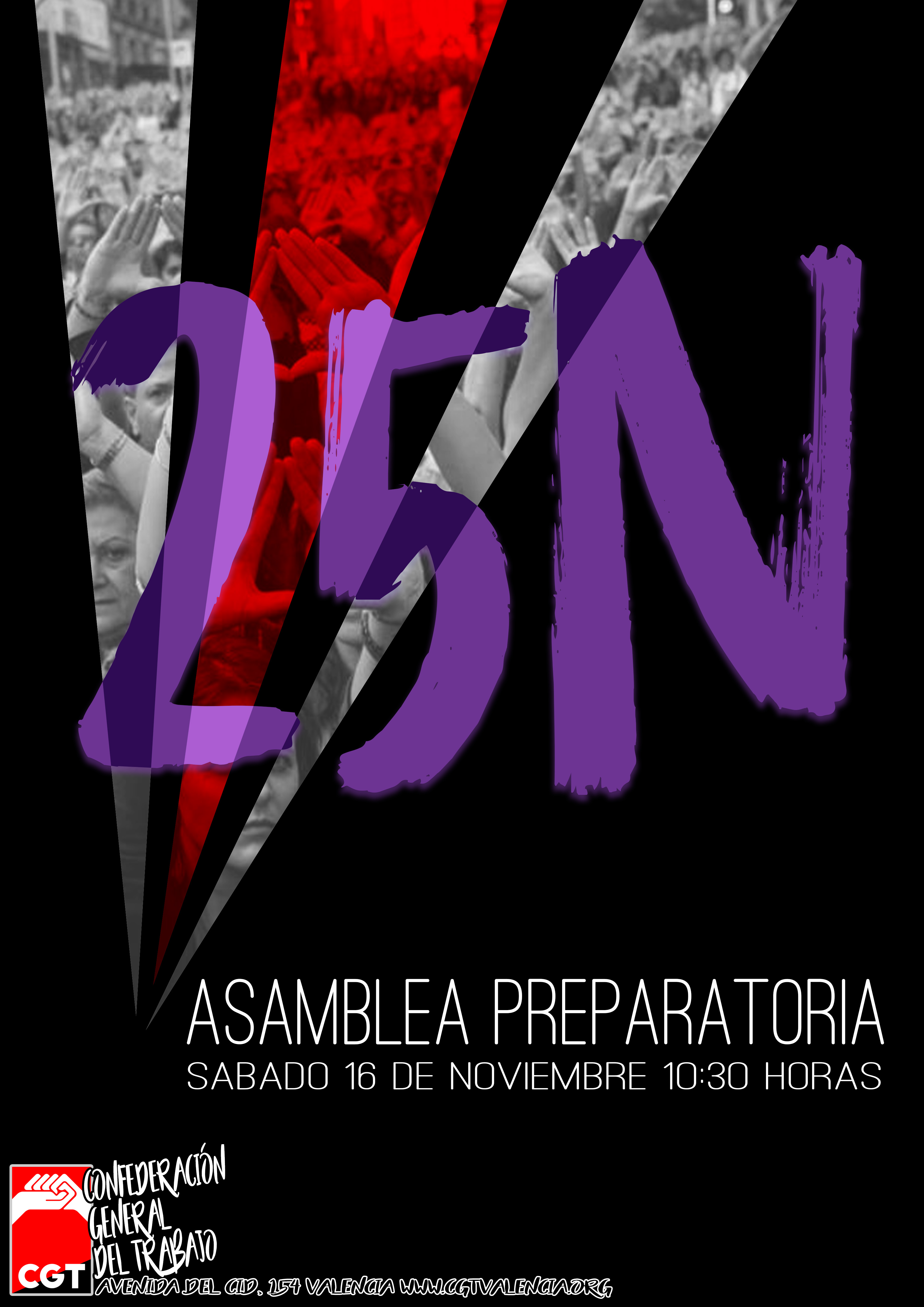 16 de Noviembre a las 10:30 horas en los locales de la Avenida del Cid,154 de Valencia, asamblea preparatoria para el 25N