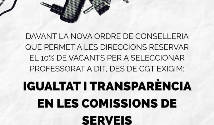 CGT Ensenyament València manifesta la seua oposició frontal a la nova Orden de Comisiones de Servicio publicada per la Conselleria d’Educació.