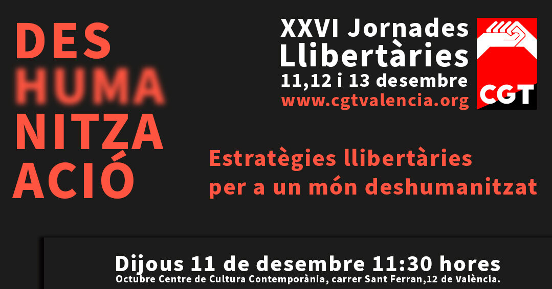 XXVI Jornadas Libertarias de CGT València: “Estratègies Llibertàries per a un món deshumanizat”