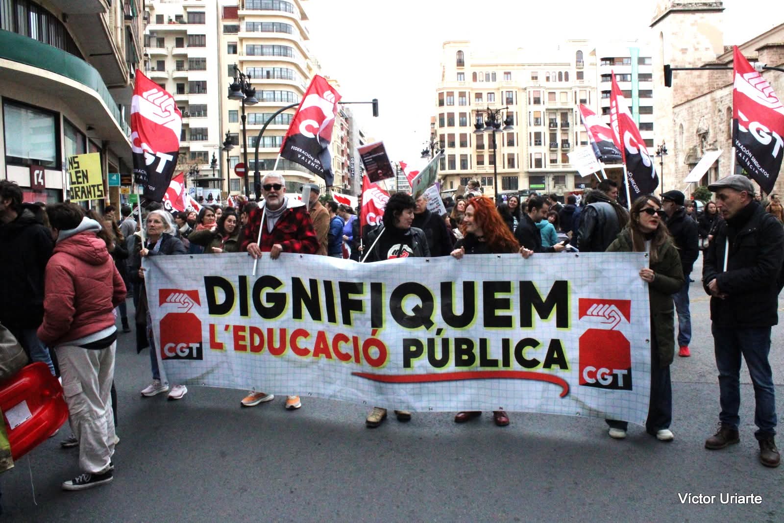 La Secció Sindical d’Ensenyament de CGT ha cridat al conjunt de la comunitat educativa del País Valencià a secundar la jornada de vaga en l’ensenyament del dimarts 31 de març perquè “sense organització, ni lluita des de la base no hi ha dignitat educativa”. CGT participarà de manera activa en la convocatòria amb les següents reivindicacions: rebaixar les ràtios, per una inclusió real i efectiva, més recursos materials i personals per a atendre la diversitat, defensar el valencià davant els atacs que pateix per part de l’administració, no a l’FP dual que mercantilitza l’educació, infraestructures dignes i climatitzades, menys burocràcia, que la religió isca de l’ensenyament públic, desprivatitzar i desconcertar l’educació, estabilització del professorat interí, internalització dels serveis de neteja, atenció educativa, monitores i menjador escolar que estan en mans d’empreses privades amb pitjors condicions laborals, reconeixement i retribució de les tutories, una pujada de salaris que permeta recuperar el poder adquisitiu, equiparació de sous en FP i una substitució del personal de baixa ràpida i eficaç”.