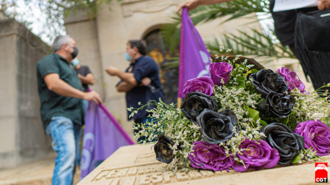 La Federación local de València de CGT ha realizado esta mañana, 2 de junio, el acto del aniversario de la muerte de Lucía Sánchez Saornil en el cementerio general de València, donde se encuentra enterrada.