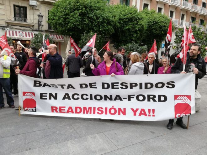 El pasado viernes 13 de diciembre se convocó a los y las trabajadoras para la primera acción en contra de la aplicación del ERE en Acciona Facility Service que pretende acabar con 121 puestos de trabajo en esta empresa subcontratada de Ford.