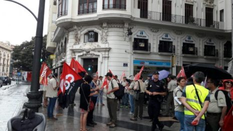 Al llarg del matí del 30 de maig, els Agents Mediambientals, funcionaris de la Generalitat, ens hem concentrat a les portes de l’Edifici Bancaixa de València on hi havia programada una xarrada sobre les accions de la Generalitat contra el canvi climàtic impartida per la nostra Consellera N’Elena Cebrián i closa pel President de la Generalitat, En Ximo Puig.