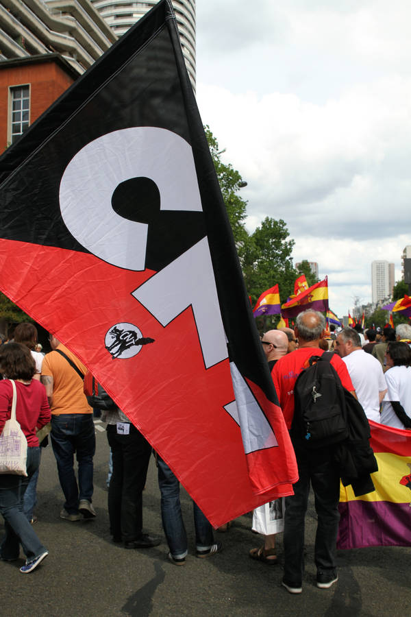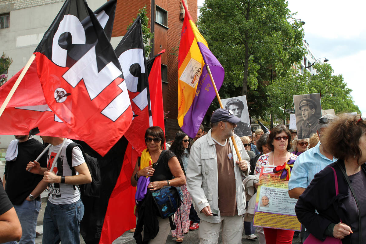En el recorrido, asistieron personas de Francia y España y estaba llena de banderas de la República española y rojinegras libertarias.