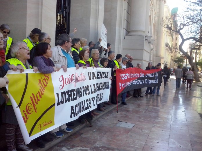 D’aquesta manera, la protesta organitzada en el matí de la jornada d’avui, quan encara ressonen les notes de la massiva manifestació de pensionistes valencians del dia 22, torna a posar en evidència el descontentament d’un col·lectiu bregat en la lluita que, recalca un integrant de la CGT “sap molt bé que els drets són irrenunciables i que cal defensar-los front als atacs del neoliberalisme. I no ens van a convèncer amb propostes que semblen de broma com la de rebaixar l’IRPF o pujar el 2% a les pensions de viduïtat”.