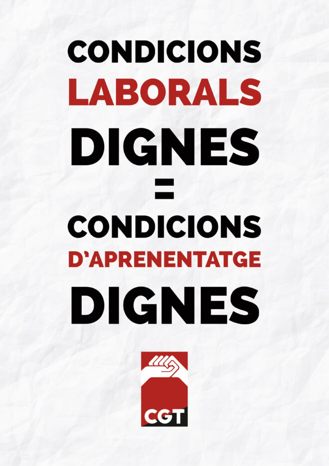 En qualsevol cas, el nostre paper en aquest cicle de mobilitzacions és el de suport a les principals propostes dels convocants i presentació d’altres reivindicacions que van en la línia transformadora cap d’un model d’escola completament laic, públic, social i horitzontal. Així mateix, CGT estarà especialment vigilant per tractar d’evitar que hi haja renúncies i passos enrere per part dels convocants.