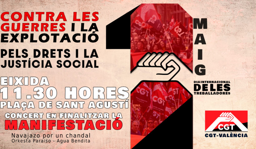 Este Primero de Mayo, CGT València vuelve a hacer un llamamiento a participar en la manifestación que hemos convocado y que saldrá desde la Plaza San Agustín de València a las 11:30 horas.…