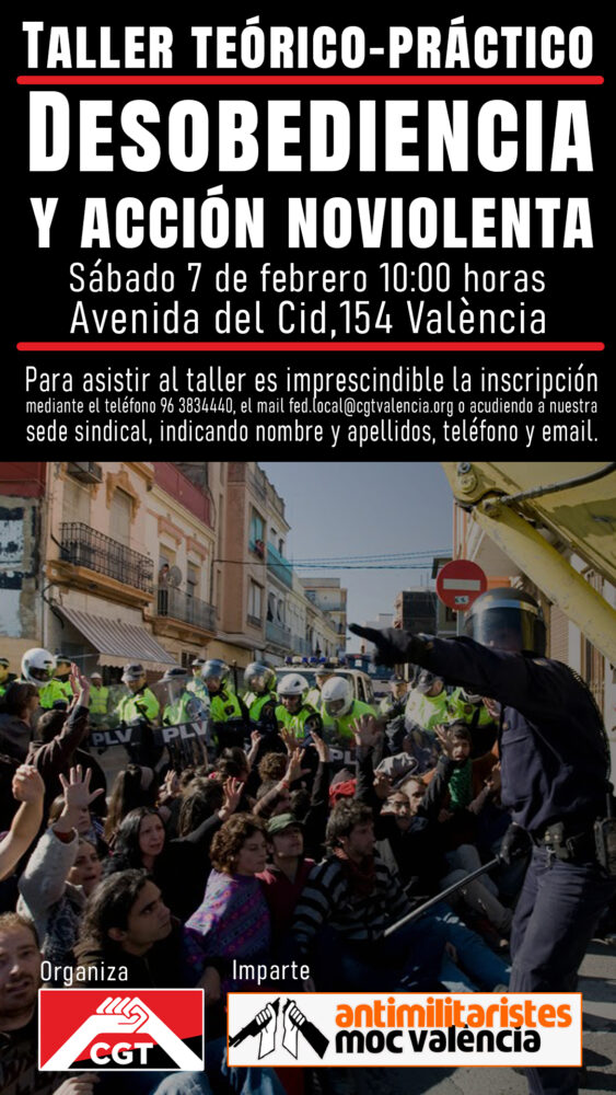 Impartido por Antimilitaristes-MOC València (mocvalencia.org), y organizado por CGT-València